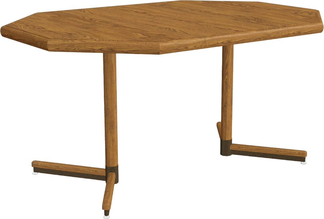 This Hansford Brown Clipped-Corner Dining Table from Chromcraft™ features a square round extension HPL tabletop with solid wood edges and internal edge banding. It has one 18" leaf and a metal table base with wide wood caps.Read More