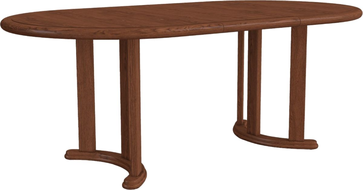 This Harris Walnut Oval Dining Table from Chromcraft™ features a square round extension HPL tabletop with solid wood edges and internal edge banding. It has one 18" leaf and a metal table base with wide wood caps.Read More