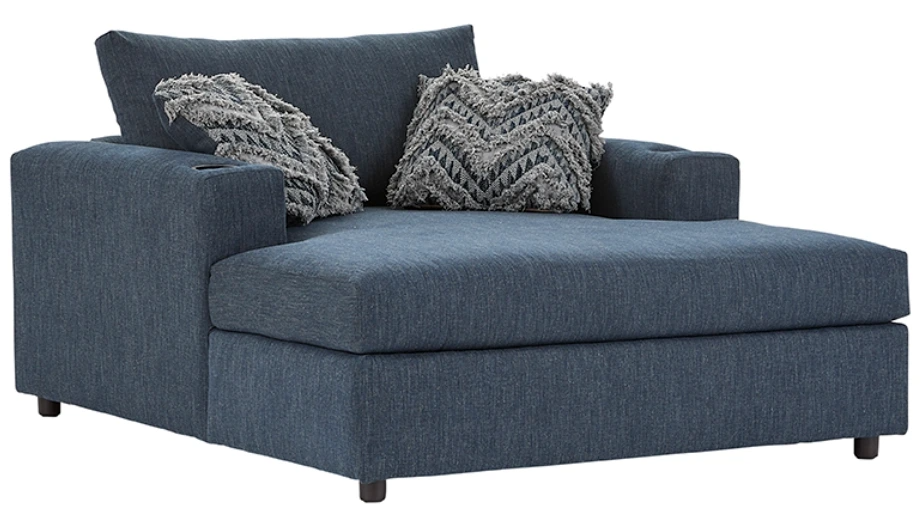 The 24500 theater chaise is the ultimate in cozy relaxation. Upholstered in lilou denim-toned fabric, this roomy chaise features extra-thick padding, built-in cupholders, and two coordinating throw pillows, making it perfect for movie nights, reading, or lounging.Read More