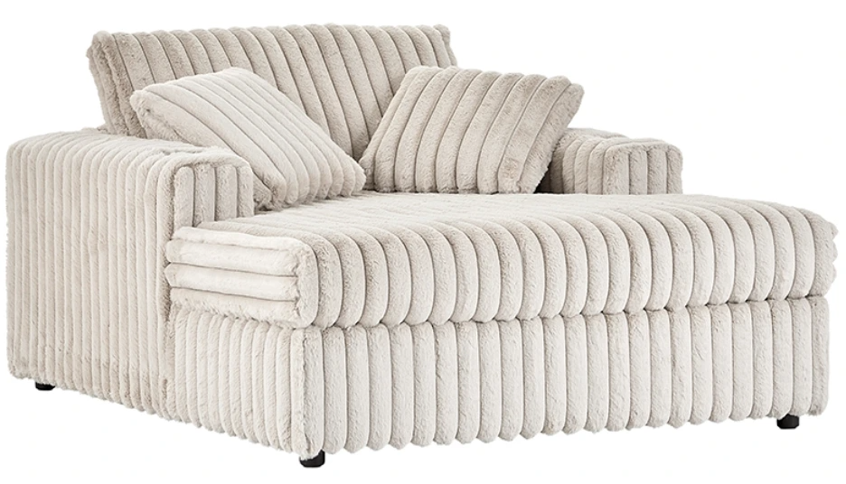The 24550 theater chaise is your go-to for luxurious lounging. Upholstered in the rich mondo champagne fabric, this spacious chaise features built-in cup holders and plush cushioning for ultimate relaxation. It's perfect for family movie nights or cozy evenings at home. Crafted on a solid hardwood frame with foam and sinuous springs.Read More