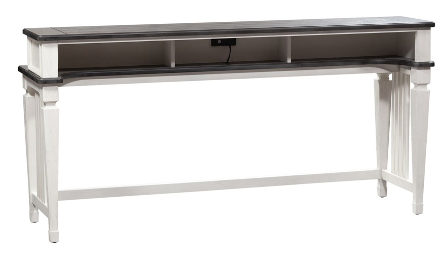Elevate your space with the Allyson Park console bar table. Crafted of pine solids and veneers with cathedral white oak tops, this classic console bar table would make a gorgeous addition to your casual styled home, perfect for behind your sofa.Read More